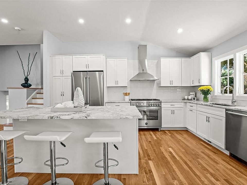 Located on a quiet street w. 0.34 acres of level land, this 4 bed 3 bath home w. 2295 sqft of living space checks every box for today's modern buyer. The open concept eat in kitchen & family room is the heartbeat of the home w two story ceilings & sliders that lead to a large deck for dining and entertainment. A few steps up from the family room, you will find the principal suite w. outfitted WIC & a spa-like ensuite bath, two additional bedrooms, and one hall bath with double vanity. The home also offers a a first floor den/4th bedroom that can be used as the perfect home office or guest suite with full bathroom. There is a finished lower level with designated recreational space (additional 200 SF not included in total), an oversized garage, & mudroom to add to the list of convenient amenities. All minutes to Blind Brook elementary, Pine Ridge & Crawford Park, and shops! Welcome home! Additional Information: ParkingFeatures:1 Car Attached,