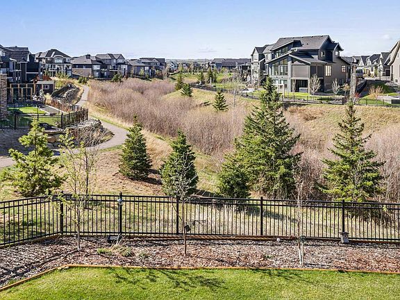 Nestled in the sought-after Cranston's Riverstone community, this stunning 3,800 sq ft home offers an exceptional blend of luxury, functionality, and breathtaking views. With direct walking paths into the valley and toward the Bow River, this beautifully landscaped property embraces its Southwest exposure. It overlooks the serene ravine for a daily dose of nature and tranquillity, backed by the picturesque Bow River for a truly serene and natural backdrop. As you step inside, you're welcomed by a grand foyer with ample built-in storage and a custom barn door that opens into a spacious mudroom. The triple garage impresses with its high ceilings, offering excellent future potential for overhead storage. The open-concept main floor with premium engineered hardwood seamlessly connects the living room, dining area, and gourmet kitchen, all thoughtfully positioned to maximize panoramic views of the ravine and river beyond. A floor-to-ceiling tile fireplace creates a stunning focal point, adding warmth and elegance to the space. The dining room opens directly onto a southwest-facing deck, offering an exceptional setting for indoor-outdoor living with retractable screens. The chef's kitchen is a true showpiece, thoughtfully designed for both elevated everyday living and effortless entertaining. It showcases full-height custom cabinetry, a premium built-in KitchenAid wall oven and microwave, a sleek 5-burner gas cooktop with a sleek hood fan, and a Samsung 4-panel refrigerator that seamlessly blends style with function. Just beyond, a discreetly positioned spice/prep kitchen adds both convenience and refinement. Adjacent to the kitchen, a dedicated office space offers inspiring views of the backyard, ravine, and river. Upstairs, a spacious bonus room provides a perfect relaxing spot while taking in the views of the walking path and the surrounding landscape. The master suite is a true sanctuary, thoughtfully designed to evoke calm and comfort. Wake up to unobstructed views of the Bow River and enjoy your own private, covered patio. The secondary bedrooms are equally impressive, each featuring walk-in closets and large windows that frame beautiful hill views. The fully finished walk-out basement extends your living space, offering an exquisite covered outdoor area enclosed by a retractable screen. The basement features Luxury Vinyl Plank flooring, a spacious fourth bedroom, a stylish wet bar, a built-in desk area, and generous open space for hosting gatherings or enjoying movie nights with a built-in projector screen. Mechanically, the home is designed for both efficiency and luxury, featuring two high-performance furnaces, an oversized hot water tank, a water softener, humidifiers, and an air conditioning system to ensure year-round comfort. The 16 solar panels enhance the home's energy efficiency, significantly offsetting energy costs and aligning with a sustainable, eco-conscious lifestyle.
