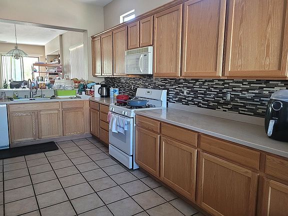 Located in the guard-gated community of Anthem Country Club, this single-story home offers security (at no through-traffic short road), energy efficiency (both solar PV and solar water heater are installed), and comfort/privacy (backyard facing reserved nature desert without house blocking view). Featuring 3 bedrooms and 2.5 bathrooms, this residence boasts an open floor plan with large living room, wall to wall hardwood floor, and picture windows, perfect for relaxing or entertaining. The kitchen maximizes space and function with its newly installed countertop backslash, pantry closet, and eat-in dining area. The oversized master suite features an large bathroom with shower and bathtub and walk in closet. The two additional bedrooms are joined by an en-suite bathroom with a separate shower/bath combo for added convenience. The spacious backyard covered with functional paver bricks and a patio provide ample room for outdoor enjoyment. A 2-car garage completes its overhead metal shelves installed providing extra storage spaces.