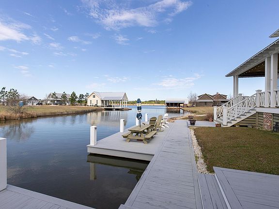 REDUCED! Need a Relaxation Station or Family Retreat? Find your Bliss and peaceful views from the porches of this waterfront home at 9 Cross Key, Big Bay Lake! This Coastal Cottage is perfect for entertaining or lazy weekends away from it all! There is room for everyone with 3 Bedrooms and 3 Baths in the Main House and additional guest quarters in the Boathouse with efficiency kitchen and a 4th full bath for a combined area of approximately 2700 square feet. The front porch leads to a combination Great Room w/fireplace, Dining Area and Kitchen with custom cabinets, granite countertops, stainless appliances, and an inviting island with seating for 6. Decor is traditional with a coastal flair! French doors lead from the great room and primary bedroom to an inviting back porch! (See More) The primary bedroom suite, located on the first level, is spacious and has a large bath and seating area. The second bedroom on the first level has access to a full bath. There is a third bedroom and bath upstairs with an adjoining loft area perfect for media/bonus area or additional sleeping arrangements. The large back porch, outdoor deck, and walkway connect the house and backyard to a charming Boat House with front porch which serves for day use or guest quarters. There is a covered boat slip with electric lift and docking area for a jet ski integrated with the boat house. Spend days on the water and have the convenience of the boat house dockside with a full bath and efficiency kitchen for refreshments and cookouts! The waterfront lot is .17 acre, has a concrete bulkhead, is landscaped and easy to maintain so that you do not spend precious time on yard work. A recent appraisal is on file supporting the square footage and asking price. So Call Today for a showing and begin Lake Life Summer 2022! Waterfront living, entertaining and enjoying the peace and quiet will be yours with this picture-perfect Home!