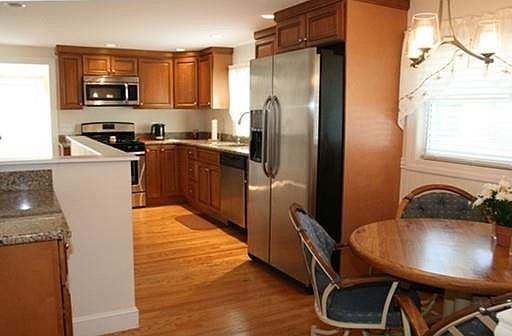 Move in condition! Updated and meticulously maintained three bedroom ranch. Newer eat in kitchen with maple cabinets, granite counters, and stainless appliances. Fireplace in living room. Large master bedroom with 3/4 bath. Lots of closet space. Two other bedrooms and a full bath. Easy one level living. Hardwood floors thru-out. Converted from oil to gas in 2015 with a high efficiency heating system. Dry basement that could be finished for additional space. Heated mudroom with sliders to the stone patio and large, flat, fenced yard. Attached garage with side door leading into mudroom. Newly paved driveway. Vinyl siding. Close to all major routes, shopping, and schools.