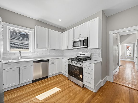 November First! Newly renovated 3 bedroom apartment in Somerville's Teele Square. Set high on the second floor is this sunny Oasis, with three bedrooms that don't share any walls, fantastic for roommates. Brand new kitchen offers stainless steel appliances, and new in unit laundry. Updated bath offers a glass sliding door on your shower. Upstairs on the second floor is one more bedroom of great size. Kitchen opens to a reach deck, and walks out to the backyard / driveway (parking available for rent!) Walking distance to Tufts, Alewife Brook parkway, and the newly constructed Somerville Community Path. Numerous dining options outside your door, should cooking not be on your mind. Easy Access to The MBTA Green and Red Line, Davis Sq, and out to I93. Tenants responsible for gas and electric.