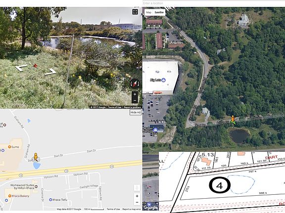 800' road frontage on Dart Dr., municipal water and sewer, natural gas, ideal location close access to schools, mall, Cornell, bus service.