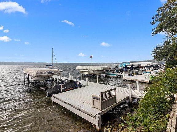 Welcome to Dartmouth Woods, an exclusive enclave of 9 homes tucked into 11 acres of greenspace with mature trees and coveted Geneva Lake frontage. Enjoy unparalleled access to the water with your private pier, designed to accommodate both a boat and wave runner, along with an additional buoy. This home makes an impression from the moment you arrive, with timeless curb appeal and captivating lake views from multiple vantage points. Inside, soaring ceilings in the great room create an elegant, light-filled ambiance. Outdoors, a newly constructed, maintenance-free wraparound deck offers multiple entertainment zones for seamless indoor-outdoor living. The walkout lower level extends the experience with access to a screened porch, perfect for enjoying tranquil lake breezes. One car garage.