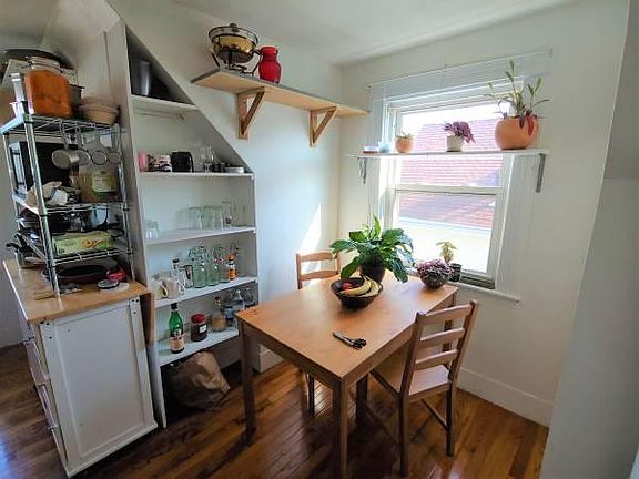 Lovely top floor two bedroom apartment in a three family house close to Union Square. The apartment features one large bedroom and one a little smaller bedroom, living room, eat-in-kitchen with gas range and portable dishwasher, hardwood floors throughout. Laundry and some storage in the basement. Shared backyard. Pets are negotiable: for cat $25/month Avail 4/1