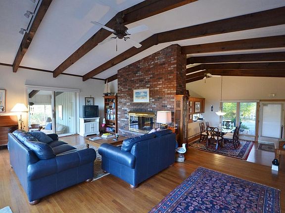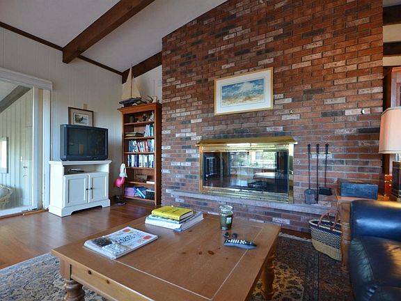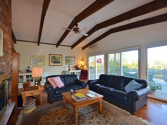 North Falmouth at Rands Canal - This unique and charming home sits on private acre lot with peak water views. 1960's 4 BR 3 1/2 bath Contemporary Ranch with finished walk-out lower level. Living room with center chimney fireplace and adjoining sun room. HW floors. Open dining room with see through fireplace. Kitchen, half bath, laundry and access to one car garage. MBR with private bath plus two more bedrooms and full bath on main level. Lower level offers large family room with sliders, full bath and bedroom with sliders. Gas heat and A/C. Deeded rights to Rands Canal. Kayak, boating and fishing at your doorstep. Less than a mile to Megansett Beach. Price reduced.