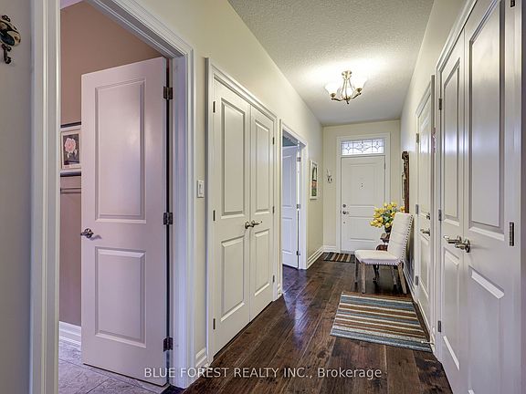 Welcome to this beautifully designed detached condo, offering the perfect balance of luxury, comfort, and low-maintenance living in a quiet and highly sought-after neighbourhood. From the moment you step inside, the bright open-concept layout impresses with upgraded moulding, tray ceilings, pot lights, and elegant finishes that elevate the style of the home while creating a warm and welcoming atmosphere. The spacious kitchen features granite counters and flows seamlessly into the dining and living areas, where custom draperies and natural light enhance the inviting feel. Hardwood floors run throughout, complemented by a striking upgraded stair rail system that adds an extra touch of sophistication. The primary suite is a true retreat with a walk-in closet, spa-inspired ensuite with double sinks, and a calm setting for relaxation. Additional bedrooms and the fully finished lower level provide flexibility for family, guests, or a dedicated home office. Central vacuum adds convenience, while tinted back windows and bathrooms offer privacy and energy efficiency. Outside, the private backyard features a beautiful stone patio that sets the stage for morning coffee, evening gatherings, or simply unwinding with a book in a tranquil setting surrounded by nature. With vacant land condo ownership, youll appreciate the benefits of a detached home combined with minimal exterior maintenance, giving you more time to enjoy the lifestyle this property affords. Ideally located just minutes from top-rated schools, shopping, dining, parks, and major highways, this home provides both convenience and elegance. Rarely do properties of this caliber become available, making it an opportunity you will not want to miss. Schedule your private showing today and experience all that this exceptional home has to offer.