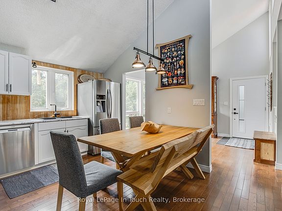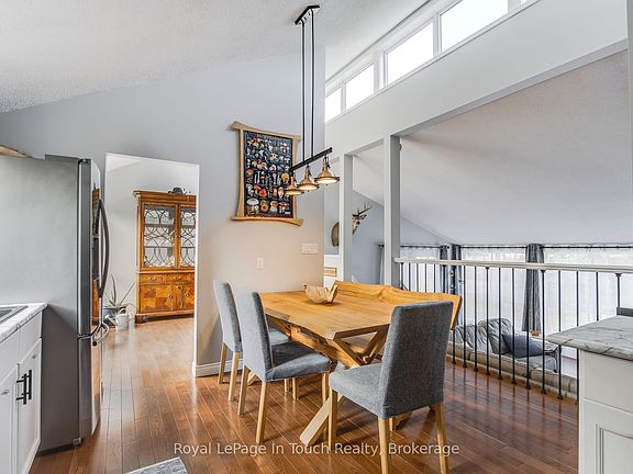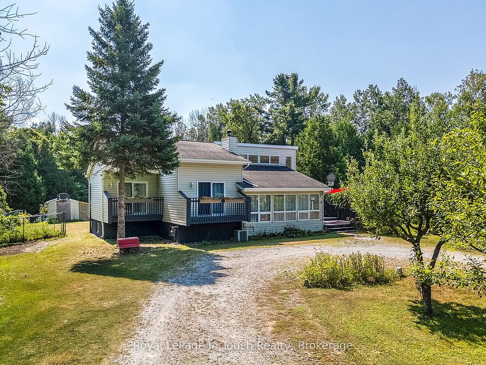 Welcome to this inviting family home with 1536 total finished sqft and on 1.6 acres in Victoria Harbour. Designed with both comfort and function in mind, it features vaulted ceilings and many windows that fill the living space with natural light, while a wood-burning fireplace brings warmth and character to the main living area. Two main-floor bedrooms each offer private balconies, while the full bath includes a relaxing corner soaker tub. The finished lower level extends the living area with more bedrooms, a bath with in-floor heating, an office alcove, and room for lots of storage. Recent updates include refreshed decking for outdoor enjoyment and a forced-air natural gas furnace (approx. 5 years old). Access to Georgian Bay is only a 2 minute walk away. Outdoors, a workshop and additional outbuildings provide space for hobbies, projects, or storage. Enjoy direct access to the Trans Canada Trail right from the property, making it easy to hike, bike, or explore the outdoors year-round. Possibility to add an Accessory Dwelling Unit (ADU) on the back property. Buyer to make their own inquiries. Just 10 minutes to downtown Midland and 75 minutes to the GTA, this home combines space, charm, and a great location - ready to be enjoyed for years to come.