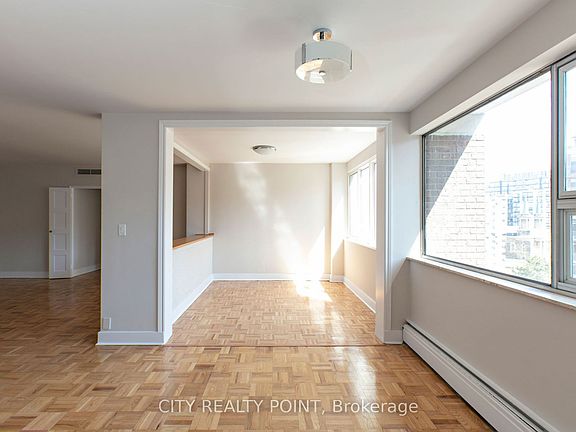 Welcome to 9 Deer Park Crescent, a refined mid-rise residence tucked away on a peaceful crescent in one of Toronto's most prestigious neighbourhoods. This beautifully updated 2-bedroom, 2-bath suite offers generous living space, an ideal layout, and abundant natural light throughout. Thoughtfully designed for comfort and functionality, the suite features expansive principal rooms, hardwood flooring, updated appliances, and in-suite laundry. Large windows offer serene treetop and city views, creating a bright and inviting living environment.Residents enjoy quiet, secure living in a well-maintained building with concierge service, on-site amenities, and a warm community atmosphere. Located just steps from David Balfour Park, the Beltline Trail, and the shops and dining of Yonge & St. Clair, with easy access to transit and nearby medical services.Perfect for those looking to simplify without compromising on space or location ideal for downsizers seeking elegance, convenience, and quality in the heart of Forest Hill.