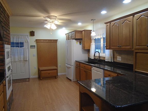 and a propane fireplace, creating a warm and inviting atmosphere. The modern kitchen is updated with granite countertops and plenty of cabinet space perfect for everyday living and entertaining. Downstairs, the finished basement family room includes a second full bath and another propane fireplace, offering flexible living space for guests, hobbies, or relaxation. Step outside to a large, fenced-in backyard complete with a two-story outbuilding with electricity ideal for a workshop, studio, or storage. Enjoy outdoor living year-round with a deck and covered patio for grilling or relaxing. No worries