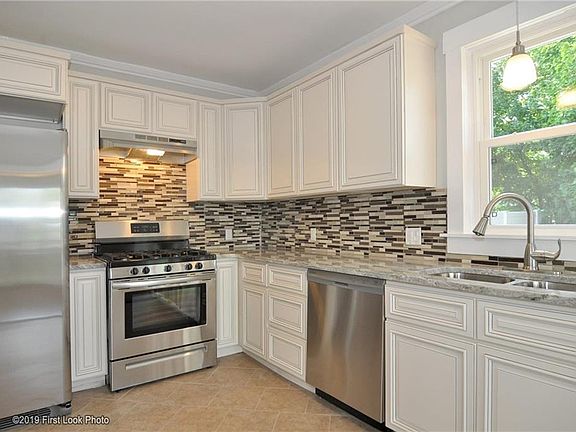 Charming renovated home with plenty of updates and great curb appeal. Check out this gorgeous kitchen with sleek, modern layout and timeless white cabinets, granite counters and a beautiful tile backsplash. Ceramic tile floors make for easy maintenance. Oversized family room with brick fireplace and open layout with dining area. French doors lead you to the private backyard. Modern baths with tile and new vanities and fixtures. Gleaming hardwoods throughout the beds. Nice back deck. Great front porch as well. Perfect for a porch swing or patio set. Nice stone wall in the front. Literally 2 minutes to Highway. Ten minute commute to Providence in the AM. Close to Rolfe Square and Elementary Schools, Roger Williams Park and more.