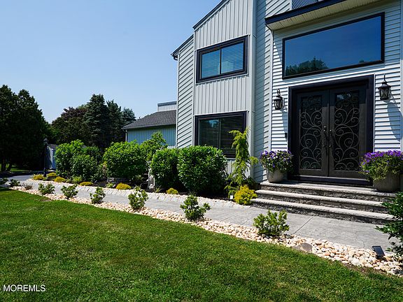 Stunning 4-bedroom, 2.5-bath colonial, completely updated and impeccably maintained on 1 acre in an exceptional neighborhood, wonderful schools, zoned Colts Neck H.S. This 3064 sq ft home features a gorgeous chef's kitchen with custom wood cabinetry, quartzite countertops, an oversized island and buffet, Viking appliances—including a 36'' gas stove with pot filler, 6-ft refrigerator/freezer, farm sink, and vegetable sink. The spacious custom interior includes wide plank, white oak floors upstairs, Italian porcelain wood-look tile on the first floor, crown moldings, solid wood doors, and custom metal balusters. Enjoy modern upgrades such as a 2019 Timberline roof, custom windows, upgraded A/C (2019), deep well (2018) with reverse osmosis, full-house water filtration & softener, all-new plumbing (Grohe & Moen), new gas fireplace and LED childproof lighting throughout. The bathrooms are beautifully finished in marble and porcelain tile. The finished garage features an epoxy floor, new lighting, and outlets. Outdoor living is a dream with a stamped concrete patio (30x30), imported Portuguese pizza oven, lush professional landscaping, block steps, new walkway, premium aluminum and black chain fencing, and an 8x14 shed. Full security system included. A true move-in-ready masterpiece!