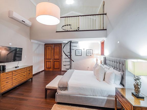 This sun-drenched and spacious property has 5 bedrooms, 6.5 bathrooms over 6,000 sq. ft. and sits within a lush and tropical community. The open and contemporary property boasts cathedral ceilings, tiled floors throughout, a dream kitchen with all high-end appliances and a secluded, fully-furnished outdoor patio/backyard. Large Infinity Pool overlooking the East Golf Course The Dorado Beach East community is private, gated, family friendly and offers a wide range of facilities that you can enjoy. The facilities include scenic pools, clay tennis courts, basketball and beach volleyball courts, a basic gym, a game room, a 3-par golf course that winds through the neighborhood, and an aviation themed park which has a custom water park and sand park. Renter is responsible for the utilities payment.