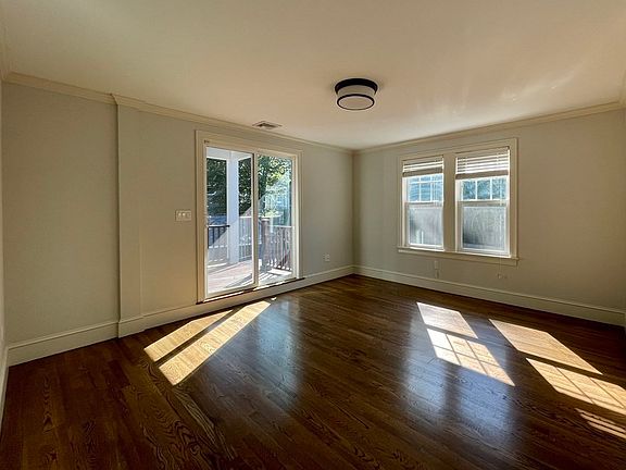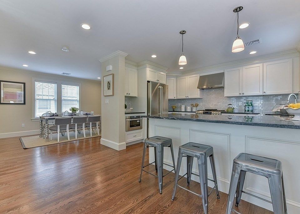 This is a stunning, renovated Brookline condominium home. The unit features 3 bedrooms, 2 full and 1 half baths on two-levels of living space. Unit features include state of the art Chef's kitchens with stainless steel appliances, granite counters and a breakfast bar. It has a graciously sized fireplace living and dining room with hardwood floors throughout. The master suite with a beautiful bath and large walk-in closet. The spacious rear porch of unit is a perfect place to relax and enjoy a cup of tea. The upper level features 2 wonderfully sized bedrooms in addition to a gorgeous second bath. Central air, two-car parking, in-unit laundry room and immediate access to the Heath School and neighborhood playground.