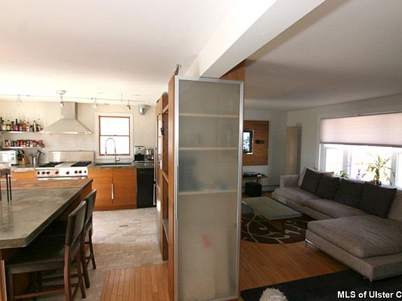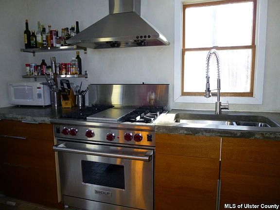 The GREAT ESCAPE! In the shadows of the Shawangunk Mountains and within striking distance of the worldly recognized climbing cliffs at Mohonk Preserve. You will enjoy preparing tasty meals on the new Wolfe gas stove and in the recently renovated kitchen with custom made concrete counter top built in refrigerator and pantry area. Your deck is perched high above the yard with access directly off the kitchen so you can take advantage of grilling. If you have friends who want to visit they can romp around in the lower level and enjoy their own kitchen and full bath and have access to the beautiful serene private rear yard thru their sliding glass doors. In one of the most beautiful Hudson Valley locations with 1,000's of acres of playgrounds. Hurry, I think this will sell quickly!!!