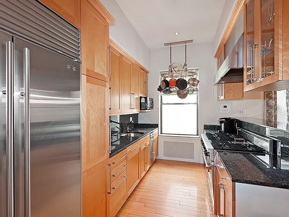 UNBELIEVABLE OASIS right off Fifth Avenue! Beautifully renovated, light & airy OVERSIZED PENTHOUSE DUPLEX rental available in gracious co-op nestled next to Central Park in beloved CARNEGIE HILL. Cook's windowed kitchen features Subzero refrigerator, Miele dishwasher, six burner Viking stove. Lovely high-ceilinged living room/dining room with decorative fireplace, custom built-in bookshelves, surround sound. Quiet primary bedroom has floor-to-ceiling closets and two exposures. Windowed, tiled spa bath with soaking tub. The real showstopper though is the MAGICAL WRAP ROOF TERRACE with adjoining HOME OFFICE space - BIG ENOUGH FOR TWIN BED! Entirely private, with views to the East of St. Nicholas's onion dome and to the West across Central Park, a penthouse of this caliber is rarely available for rent. Turn of the century, intimate, elevator building with video intercom, laundry and great super!