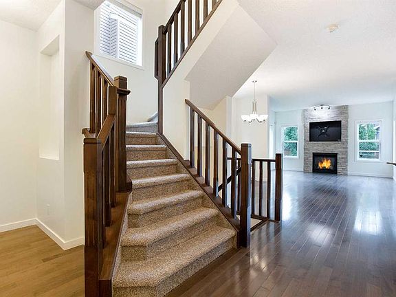 Come and check out this Cougar Ridge Beauty! In one of Calgary's most sought after communities, you have found an excellent opportunity. This well maintained 2 Storey, 4 Bedroom Home has just received a complete FRESH COAT of PAINT and BRAND NEW CARPETS THROUGHOUT! With over 2,700 sq ft of developed living space, you have all the room you need for your growing family. The main-floor is designed with style and purpose. You are welcomed into a warm and bright space that boasts modern stained maple hardwood floors throughout, 9' high ceilings, an abundance of windows that provide for a natural bright living area. The large kitchen is outfitted with a centralized island, for casual dining and entertaining space, includes an oversized walkthrough pantry, allowing for great optimization of space for small appliances and storage. There is an abundance of beautiful maple wood cabinets and cupboards, that have recently received a new coat of stain to enhance their appearance. Granite counters shine and finish it off with a gas stove, a kitchen fit for any "at-home-aspiring-chefs"! The living room is outfitted with an eye catching, stone surround gas fireplace, which adds another level of warmth to this living space. The dining area is equipped with a Custom-Built Sitting/Storage bench, which allows for maximization of space and storage... function and purpose. Upstairs includes a spacious bonus room, with vaulted ceilings, large bright windows and built-in feature wall. Used for home entertainment or allows for many other functions for family. The master is a spacious size and includes an oversized 5 pce. en-suite and large walk-in closet. Allowing for a relaxing and comfortable space. The second and third bedrooms are very spacious for growing members of the family, leaving nothing more to be desired. The fully completed basement includes a 4th bedroom, large living room which includes a second fireplace, allowing for more entertaining space to facilitate for all the members of the family. Another 4 pce. bathroom and extra storage space finishes this level off. The backyard is west facing and outfitted with a custom, composite deck which allows for a great outdoor space for barbecues and enjoyment. The double attached garage really completes this move-in-ready home. Situated in a quiet part of Cougar Ridge, with great access to the mountains, Stoney Trail, schools, shopping, recreation all nearby, it's time to come and view this today!