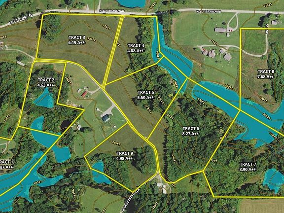 (Tract 9) Looking for a little acreage that would make a great country homesite or place to have a getaway cabin. This just maybe what you’re looking for. There are 9 tracts being offered total. Most tracts have a good mixture of woods, water, pasture and buildable sites. All tracts with the exception of tract 3 have a pond/lake on it and offer good fishing opportunities. Many of the ponds/lake have shared access with other tracts that touch the water also. All tracts have good road frontage, city water and electric available. Tract 1 also has septic on it. Country acreage lots like these don’t last long, call to schedule your own showing before they are gone. Property is also being offered as one whole tract, 56.22 A+/- for $449,000.