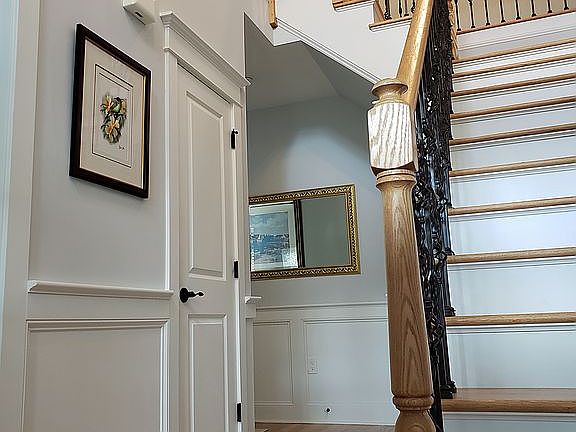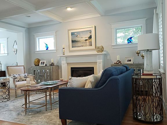 Spacious, airy, beautiful custom home. Hardwood floors and tile throughout. Beautiful 2 story entry and 2nd convenient back staircase. 2 gas fireplaces family and living rooms. Custom Plantation Shutters, custom shades and window treatments. Blue stone front porch. Professional landscaping with irrigation system. Backyard has paver patio with stone fireplace and island with built in gas grill. Convenient to walk (1 block to downtown) to shops, pharmacy, restaurants, ice cream parlor, schools and riverfront park.