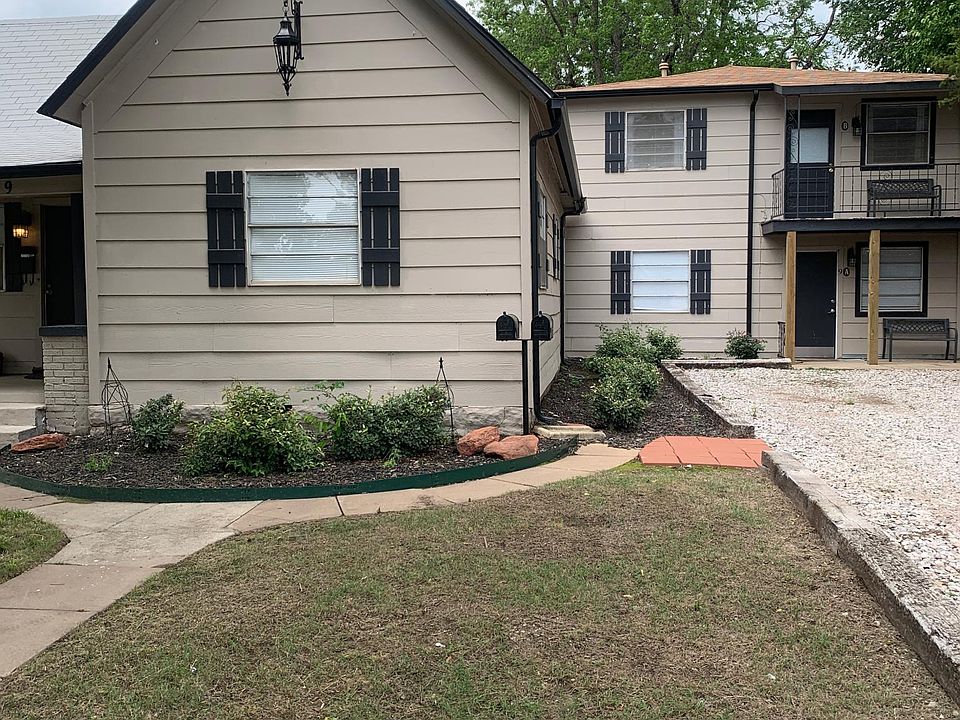 9 East Thatcher consists of three properties: a house and two- 1 bedroom apartments. 9-B east thatcher is the upstairs one bedroom apartment which will be available . (Zillow does not recognize the specific address of 9 - B East Thatcher, however ) This upscale apartment has been totally remodeled. All the bathroom fixtures are new and a vintage look marble floor has been installed. This unit is perfect for a college student, couple, or young professional. The kitchen has been redone in a classy gray.. A tile and glass backsplash has been installed and the floor is a gray granite look . The rest of the floors are original wood floors. All light fixtures are also new LED with two 52-inch ceiling fans. The unit has central heat and air and a deck in the front. Live Close to the Patriarch and Walk to all the new restaurants and shops being added to downtown edmond as well as the monthly Hurd on Hurd monthly events, the arts festival, and "Vibe" events. Tenant pays all utilities. There is also a backyard seating area and custom fire pit for u and your friends with plenty of parking . There is also a propane grill. This property is personally managed by the owner with no management company involved. All my properties are beautifully maintained. Tenant pays all utilities. One Year .