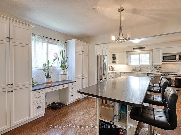 You don't want to miss this beauty in South East London! Offering tremendous value, this lovely two storey home sits on a quiet crescent with easy access to parks, splash pads, hiking trails, Westminster Ponds, shopping, and the401, making it an ideal location for families and commuters alike. Step inside to a bright and welcoming foyer with convenient access to the attached garage. The spacious living room features a large bay window that floods the space with natural light, while the open-concept layout flows beautifully into the updated kitchen, complete with white cabinetry, a large island, stainless steel appliances, and ample cupboard and counter space. The kitchen opens to a generous dining area with sliding doors leading to a fully fenced backyard featuring a patio, perfect for relaxing or entertaining. Upstairs, you'll find four large bedrooms and a renovated full bathroom, offering plenty of room for a growing family. The lower level boasts a spacious recreation room ideal for movie nights or a play area, plus a bonus flex room perfect for a home office, gym, or guest space. Additional highlights include a double driveway, newer roof (2019), central air (2018), and stylish updates throughout. This home truly checks all the boxes and is a wonderful place to call home!