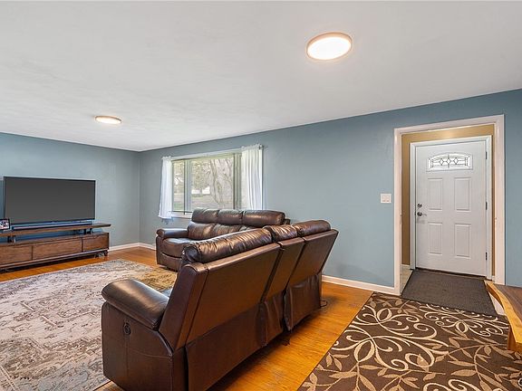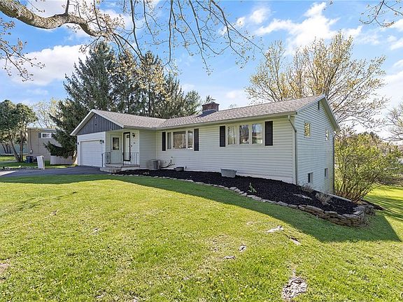 This sprawling hillside ranch offers three bedrooms, two bathrooms and features a 12' x 25' all season room with Comfort Windows and a heat pump for year round enjoyment. The remodeled kitchen and bathrooms undoubtedly add modern convenience and style to the home. With a large living room boasting a fireplace, a formal dining room, and three main floor bedrooms with hardwood floors, there's plenty of space for both everyday living and entertaining.