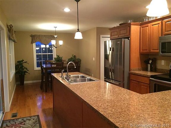 Beautiful, nearly new contemporary ranch features over 1500 square feet of living space. Three bedrooms, 2 full baths, living room, large eat-in kitchen has stainless appliances and slider to deck. Lovely hardwood and tile floors, central air, main level laundry. Huge walkout basement with slider and rough plumbing for additional bath. Two car attached garage, paved drive, underground utilities. Great 1.84 lot in cul-de-sac of similar homes.