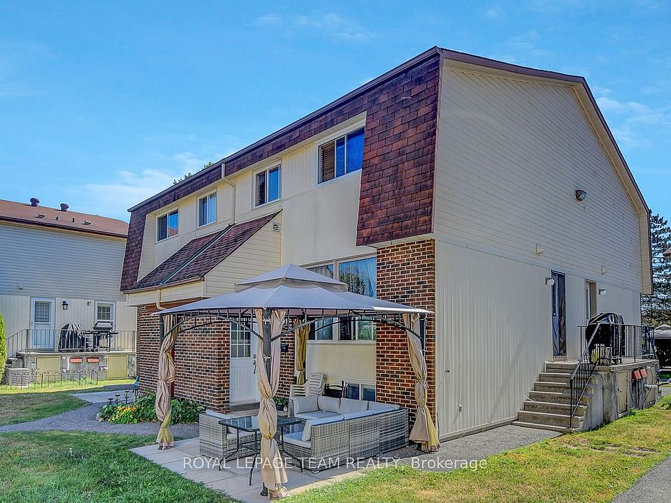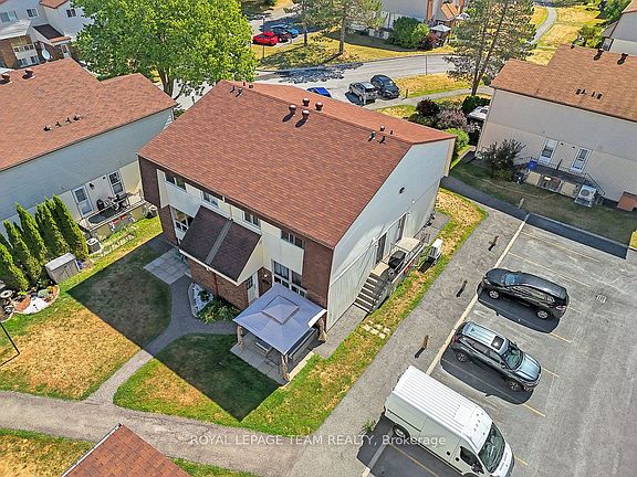 Corner-unit townhome offering bright living spaces, thoughtful updates, parking right at your doorstep & close to Trans Canada Trail! Private front patio overlooking a well-maintained courtyard, giving a wonderful sense of openness & separation from neighbouring homes. Inviting front entry sits halfway between levels, providing plenty of room to get organized. Half a level up, the main living space unfolds with an open layout, light laminate floors + delicate crown moulding & chair rail details. Spacious living area at the front of the home features a large window filling the space with natural light. At the back, the dining area flows into a galley-style kitchen boasting sleek flat white cabinets, ample prep & storage space, a deep stainless steel sink & direct-side door access to outdoor dining, perfect for summer evenings. Upstairs, 2 bedrooms including a generous primary + full bathroom with shower/tub combo and elongated vanity. Lower level adds flexibility with 3rd bedroom, comfortable partially finished hobby area, convenient in-unit laundry, plenty of storage & partial bathroom. Recent upgrades enhance the home's appeal, including kitchen (2024), main bathroom (2022) & second bathroom (2023) updates. Tucked on the edge of Westcliffe Estates in popular Bells Corners, steps from endless NCC forested walking trails + nearby schools & parks. Walkable or very quick drive to tons of shopping & dining along Robertson Rd, with Bayshore Shopping Center, Queensway Hospital & DND less than 10 minutes away. Easy access to Trans Canada Trial for quick cycling through the city. Well connected to transit & minutes from both HWY 416 & 417 makes commuting a breeze. One outdoor parking space #159, Pets permitted. Tenant occupied - 24 hours advance notice required for showings.