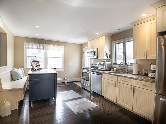 OPEN HOUS CANCELLED, Enjoy a single-family lifestyle while benefiting from rental income! Nestled within a family-friendly neighborhood, this home is also super convenient: 2 blocks to town for Sunday coffee or hop on 128 to get to work! The first-floor unit offers an updated eat-in kitchen with granite and stainless appliances, dining room, living room, and generous primary bedroom. This unit also has a lower level exercise room, finished room and half bath making it an ideal extra bedroom, home office or den. Unit 2 has a granite kitchen with breakfast bar, dining room, living room bedroom and bath on the 2nd floor with an additional bedroom or home office on the 3rd floor. Both units have in unit washer/dryers and extra storage. Relax in the sun on the back deck overlooking the above ground pool. The fenced yard has an oversized shed. Improvements include updated kitchens, newer boiler and hot water tank and 10-year-old roof.