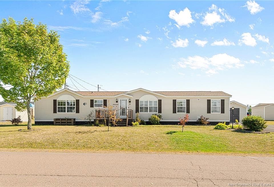 Bright and Modern 3-Bedroom, 2 Bath Mini Home in Pine Tree Park. Welcome to this beautifully updated mini home in the sought-after Pine Tree Park community in Moncton. The open-concept living area is filled with natural light and features a stunning renovated kitchen with quartz counters, a stylish backsplash, and a large center island. Just off the kitchen, a cozy living room adds extra space and makes the perfect spot to chat with guests while preparing meals. The thoughtful design features a primary suite with an en-suite on one end of the home and two additional bedrooms with a full family bath on the opposite end—perfect for comfort and privacy. A mini split ensures year-round comfort, while the large two-tier deck with a sunroom offers plenty of space to relax and enjoy the outdoors. The backyard also includes two storage sheds for added convenience. Pine Tree Park is known for its welcoming community, quiet setting, and well-kept lots, all while being just minutes from shopping, schools, restaurants, and highway access. This move-in-ready home offers modern updates, indoor and outdoor living space, and a fantastic location. Don’t miss your chance to make it yours! Custom-made shutters and bedroom blinds are included! The lot fee is $475 per month.