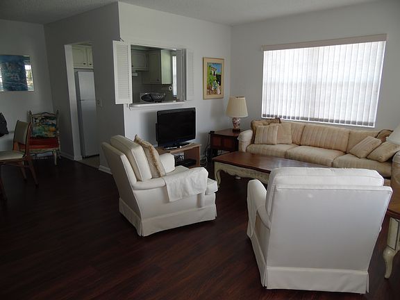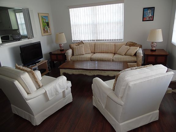 THIS ONE BEDROOM 1/5 BATH CONDO IS INVITING WITH IT'S NEUTRAL COLORS AND LOCATION. THIS CORNER UNIT IS FLOODED WITH LIGHT AND SURROUNDED BY LUSCIOUS PALMS AND GREENERY. THE PATIO OVERLOOKS A LARGE GREEN FIELD WHICH LEADS STRAIGHT TO OUR AWARD WINNING CLUBHOUSE! AS A RENTER YOU CAN ENJOY ALL THE AMENITIES THE OWNERS DO SUCH AS TENNIS, SWIMMING, FREE MOVIES, BROADWAY SHOWS, BALLROOM DANCING, STATE OF THE ART GYM, VARIOUS CLASSES SUCH AS STAINED GLASS AND SCULPTING, BILLARDS, ETC.AVAILABLE FOR SEASONAL RENTAL @$1800 3+ MONTHS. TENANT MUST BE 55 YEARS OF AGE , HAVE GOOD CREDIT AND A CLEAN BACKGROUND. SORRY...NO PETS.