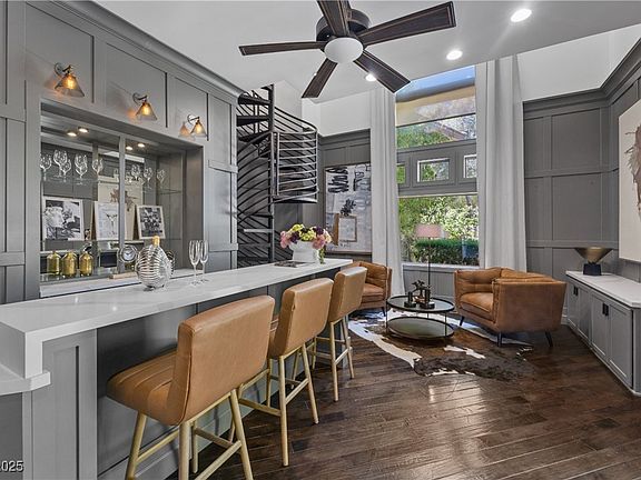 This exceptional custom estate in Anthem Country Club is privately situated on a half-acre corner lot with an attached casita. Designed for family living and grand-scale entertaining, the floor plan blends openness with intimacy, offering versatile spaces for every lifestyle. Interiors showcase ¾-inch walnut flooring, Italian limestone columns, and multipoint French doors. Six en-suite bedrooms provide comfort and privacy, including a luxurious primary suite with a private balcony w/ fireplace, steam shower, soaking tub, and California Closets. Downstairs, flexible spaces include a casita, fitness studio, and home office. At the heart of the home, an opulent wet bar—complete with refrigerator and dishwasher—creates the perfect setting for entertaining. A temperature-controlled wine cellar, saltwater pool, Zen garden, and outdoor kitchen further enhance the lifestyle. A four-car garage is complemented by an extended dual driveway—ideal for hosting gatherings in style.