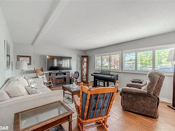 SWIM, DINE, DANCE, REPEAT - THIS IS HOW GOLDEN YEARS SHOULD FEEL! Take a splash in one of the two heated outdoor pools, get your hair done without ever leaving the community, head to the ballroom for a dance or event, enjoy a good book in the library, play a round of indoor or outdoor shuffleboard, or join a fitness class in one of the exercise rooms - this is life at Sandy Cove Acres! Set in one of Innisfil’s most desirable adult lifestyle communities, this home offers a peaceful, low-maintenance lifestyle surrounded by nature and like-minded neighbours. The professionally managed neighbourhood features three separate clubhouses offering amenities including ballrooms, kitchen facilities, libraries, laundry facilities, shuffleboard courts, and fitness centres. The on-site Sandycove Mall has a drug store, variety store, hair salon, restaurant, and clothing shop. This carpet-free 2-bedroom home features a bright and functional galley kitchen with classic white cabinets, a double stainless steel sink, neutral counters, and an adjacent laundry area with a walkout. The open-concept dining and living areas are bright and inviting, with the dining room offering a sliding door walkout to a private deck and the living room warmed by an electric fireplace. The primary bedroom includes a 2-pc ensuite, and the accessible layout offers wide hallways, assist bars in the bathrooms, and a ramped entry for ease of mobility. Parking is available for two vehicles, and community services include maintenance of common areas, snow removal of roads, and maintained green spaces. Nearby Innisfil amenities include Shoppers Drug Mart, Rexall, multiple grocery stores, Home Hardware, and Canadian Tire, while Barrie offers additional conveniences such as RVH, Huronia Urgent Care Clinic, Costco, and more. Whether you're looking to stay social, stay active, or simply enjoy peace of mind in a well-cared-for community, this is where comfort meets connection - your golden years start here!
