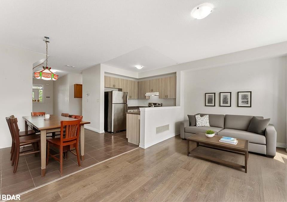 Motivated Seller With Quick Closing Available! This executive freehold semi-townhome in Angus offers exceptional privacy, attached only on one side by the house and garage. Step inside to a bright, spacious layout with soaring 9-ft ceilings and fresh updates, including new luxury vinyl flooring on upper level and paint throughout. The main level features inside garage entry with direct access to the home and fully fenced backyard. The open-concept living and dining area boasts laminate floors and hardwood stairs, while the eat-in kitchen offers ceramic tile, ample cabinetry, and a walkout to the backyard—perfect for entertaining. Upstairs, you’ll find a large 4-piece bathroom and three generous bedrooms, including a primary suite with walk-in closet and full ensuite with soaker tub and separate shower. An upper-level laundry room adds convenience. The unfinished basement provides ample storage and potential for customization. No direct rear neighbours, as the property backs onto a municipal catchment area for added privacy.