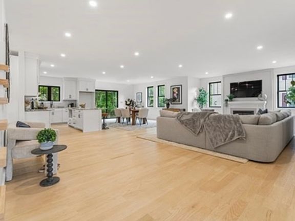 Luxury Living in Needham Heights! This tastefully designed townhouse on a dead-end, private street offers a cutting edge kitchen with quartz countertops, custom cabinetry, stainless steel appliances and a large walk-in pantry. The open-concept living area features a gas fireplace, opulent hardwood floors, and an abundance of natural light. The first floor includes a flexible bedroom/office w/ full bath. Upstairs, the second floor boasts a large primary suite with an oversized shower, a luxurious tub, a double vanity, and dual walk-in closets. Three more bedrooms all with/ en-suites, & a laundry room complete the second level. Ascend to the third floor, offering another bedroom/office, a full bath, and a versatile bonus room. This home offers a private and well manicured yard space and an oversized 2 car garage. Located just over 1/2 mile from Needham Heights, this townhouse provides easy access to the train, shops, schools, highways & restaurants, perfectly suited to meet all your need