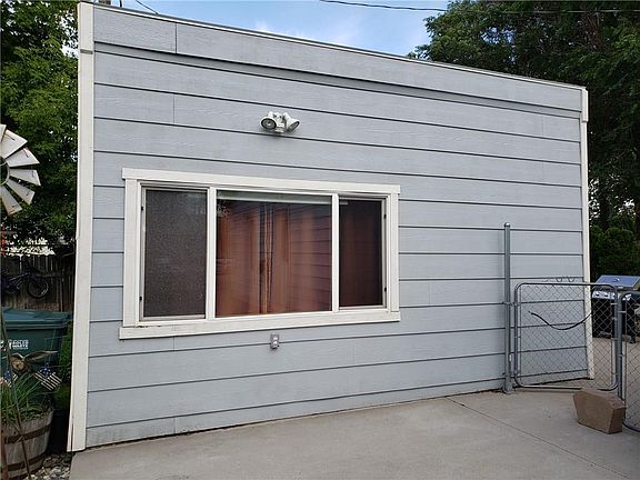 Unique set up! Front house has 2 bedrooms with the laundry in one closet. New flooring through out front house! The accessory building is set up as a master bedroom with a half bath and heated by the gas fireplace on a thermostat. Accessory building is 432 sq ft and the main house is 644. The 2 together make up the total sq footage. The accessory building could be a shop. There is a shed as well. UGSP with a well, however, well has not been used this year. Fenced yard and cute little cul-de-sac. New hot water heater last year. Need notice to show, dogs.