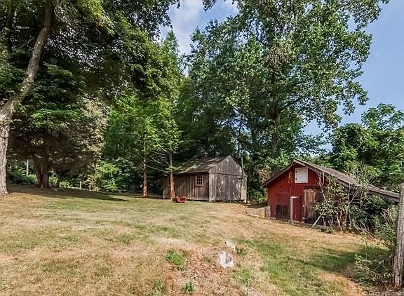 A charming home just over the Lyme/Old Lyme border. The welcoming wrap-a-round porch is nice and deep for the ultimate in summer lounging. Creative use of warm woods throughout add to a sense of well being and history. The second floor is entirely the master suite with large sleeping chamber and spacious custom bath featuring a cast iron extra long slipper tub. Newer mechanicals include propane heating system. The attached 2-car garage has a walk up second floor. Two outbuildings on the grounds including a hand assembled post and beam barn which is beautiful. Less than 5 minutes to downtown Old Lyme.