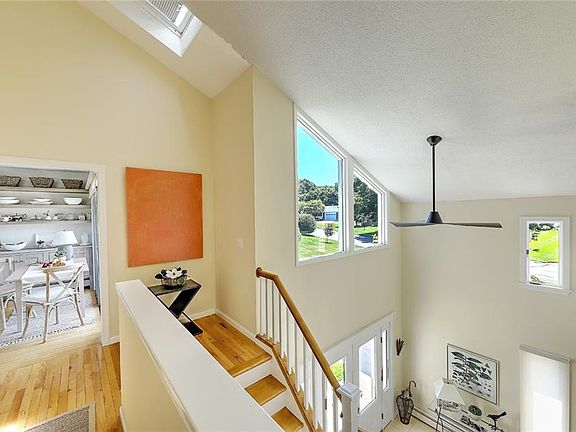 Welcome to 9 Hanley Farm, a sophisticated townhouse with contemporary flair. Enjoy cool sea breezes, water views and spectacular sunsets from one of the many decks. Sunny updated interior with soft neutral colors and interesting architectural details bathed in natural light. Vaulted living room with walls of windows and doors lead to a beautiful deck overlooking the water. The dining room is spacious and walks out to your private deck overlooking greenery and the water. Smashing gourmet kitchen with beautiful wood cabinetry, quartz counters and stainless appliances. Tucked off of the living room is a home office, den or guest room with a half bath. The primary suite is located on the first floor with spa bath and custom designed walk-in closet with access to a private deck and patio. The second bedroom, full bath, laundry area and oversized 2 car garage complete this floor. Full unfinished basement with tons of storage. Hanley Farm abuts the Audubon Society with access to the East Bay bike path and water. Eclectic downtown Warren is just a short stroll where you can enjoy waterfront dining, boutiques, art galleries and a historic library. Enjoy one of the lowest condo fee's in the State and easy access into Providence Buyer pays 6 month condo fees capital contribution to condo association at closing.