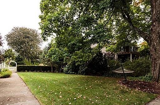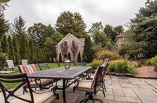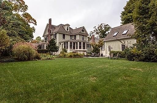 Classic Center Entrance Colonial on one of the quietest streets in the sought after Flats neighborhood close to town center and schools. Gracious foyer featuring pocket doors leads to large living and dining rooms. Formal living room boasts classic fireplace, floor-to-ceiling built-in bookshelves, and large sunlit bay window seat. Original hardwood floors, wood trim, and detailing throughout including large butler's pantry. Expanded kitchen/family room features granite counters, cherry cabinets and bookshelves, wet bar, tiled floors with radiant heat, and panoramic views of mature perennial gardens. Covered side porch includes storage area and opens into mudroom that includes built-in cabinets with ample storage. Large level lot offers abundant side and backyard open spaces surrounded by mature trees and shrubs and includes a delightful backyard slate patio. Majestic full-length front porch with mahogany flooring. Two-story garage includes cathedral space with skylights and 1/2 bath.