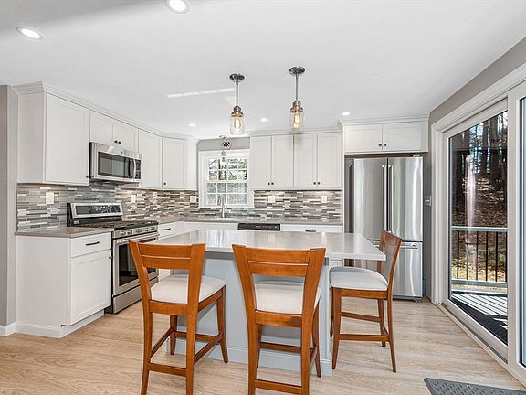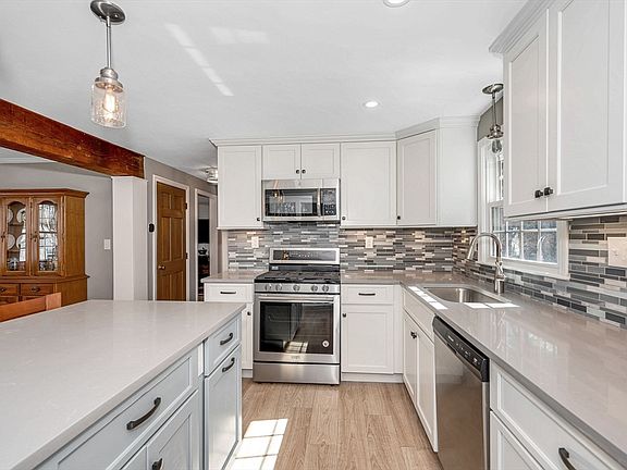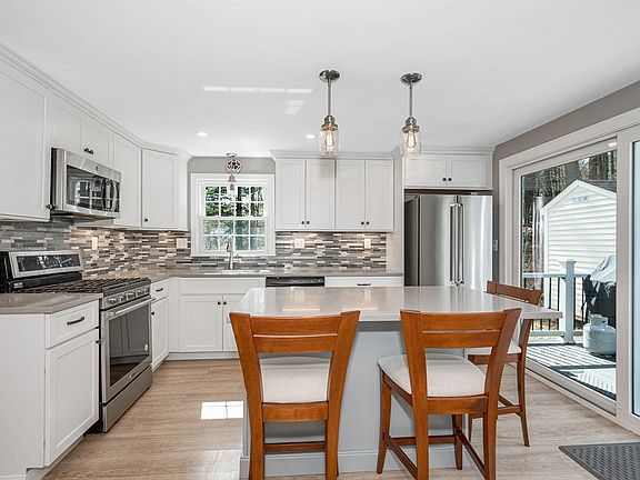 Welcome to 9 Harvard Rd. This amazing full shed cape with natural gas and town sewer is in a great East Billerica location. Enter thru the oversized slider to a gorgeous kitchen featuring white cabinets with undermount lighting, quartz counterops, stainless steel appliances and oversized gray island with pendant lighting open to the dining area. Living room with laminate wood flooring and picture window. First floor bedroom/home office/den with slider overlooking the backyard. Bring your ideas to the second level which has 3 bedrooms, plus an additional space with some rough plumbing that is ready to be made into a 2nd full bathroom. Large basement space has the possibility for future living space. 2 decks, central air, storage shed, vinyl siding, newer windows, and so much more. Open house Saturday March 30th from 11 to 1.