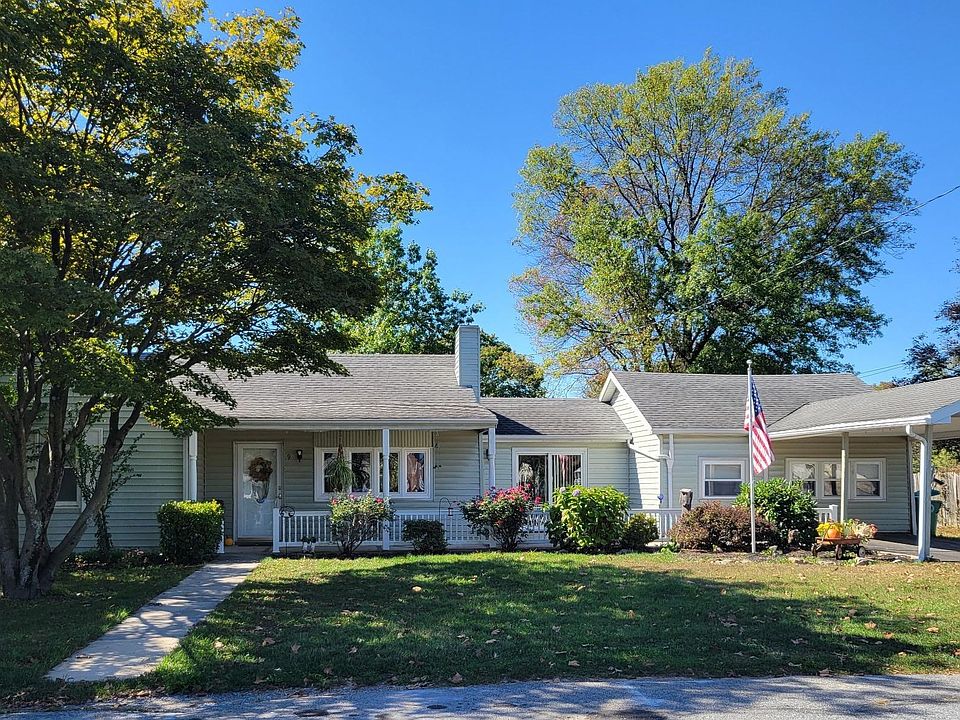 Welcome to this cozy 2-bedroom, 1-bath home offering charm, comfort, and convenience with 1,374 sf! Ideally located near shopping and major highways, this well-maintained home greets you with a spacious outdoor seating area and a covered front porch. Step inside to an inviting living room featuring brick accents and a beautiful bay window. The adjoining dining area leads to a nostalgic kitchen with both an electric range and second wall oven (just in time for holiday cooking), an island, pass-through window to rear covered patio, and sliding glass doors opening to the front patio. Just beyond the kitchen, you'll find a warm and versatile family room—ideal as a game room, guest space, or even a 3rd bedroom. This special room includes a propane stove, two built-in twin Murphy beds, large storage closet, and direct access to a flat, fenced backyard. Recent updates include luxury vinyl plank (LVP) flooring and stylish shiplap walls in the second bedroom, a new sewer line to the street, and new water heater (2024). The laundry room offers extra storage and has its own exterior entrance for added convenience. Additional storage in attic. Two sheds with electricity stay with the home, providing excellent workspace or storage options. This lovingly cared-for home is ready to welcome its next owners—don’t miss your opportunity to make it yours!