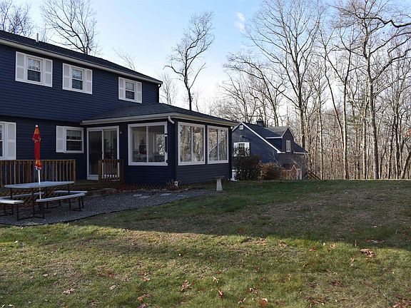 This charming Colonial home, complete with a separate rental unit above an oversized heated garage, presents excellent opportunities for income generation or multi-generational living, making this an ideal time for new occupants. Set on a quiet cul-de-sac and situated on 1.5 private acres with its own trail, this four-bedroom home offers both comfort and privacy The property features energy-efficient solar panels that are fully paid off. A beautiful walkway leads to a welcoming farmer’s porch, and inside, the first floor boasts hardwood floors throughout. The spacious eat-in kitchen includes tile flooring, while the living room offers a cozy pellet stove. A family room with a fireplace provides a relaxing space, and a lovely three-season room off the dining area leads to a deck and patio area with a fire pit and stunning landscaping. Upstairs, the master suite offers a walk-in closet and an en-suite bath, along with three additional bedrooms and another full bath. Additional features include a backup generator, an attached two-car garage, and a heated detached oversized garage with a legal apartment above. Over $200,000 in recent renovations—detailed list available—includes a brand-new septic system that serves both buildings. The mostly finished basement, not included in the square footage, offers additional living space perfect for a home office, gym, or family retreat. ACCEPTING BACK_UP OFFERS