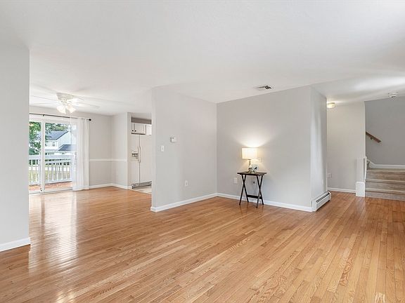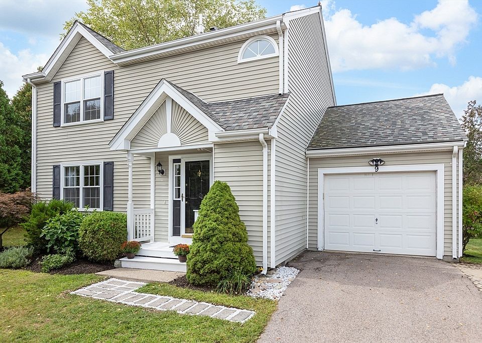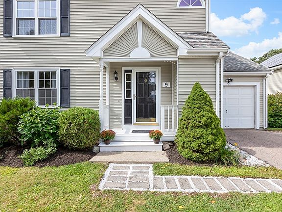 Beautiful Colonial in wonderful Village Green neighborhood. The home is set at the end of an inlet abutting trees providing a more private setting. This home is in move-in condition boasting all major updates: Prof Paint (’25), new Harvey windows & slider (’25), new Bosch dishwasher (’25), new tankless boiler/water heater (’24), new roof (’20), new AC (’17). The portico welcomes you into the foyer which is adorned by hardwood flooring plus a coat closet. Hardwood flows into spacious open floor plan of the living room & dining room filled by natural light. The bright white, grey & stainless steel kitchen w/granite counters & hallway half bath complete the 1st level. Upstairs offers 3 spacious bedrooms w/wood laminate flooring, hallway linen closet & a full bathroom. The large finished lower makes a perfect family room retreat. Relax on wood deck overlooking yard & gorgeous plantings. Additional features include 1 car garage, award winning schools,~4.5 miles to Commuter rail & more!
