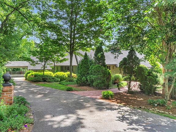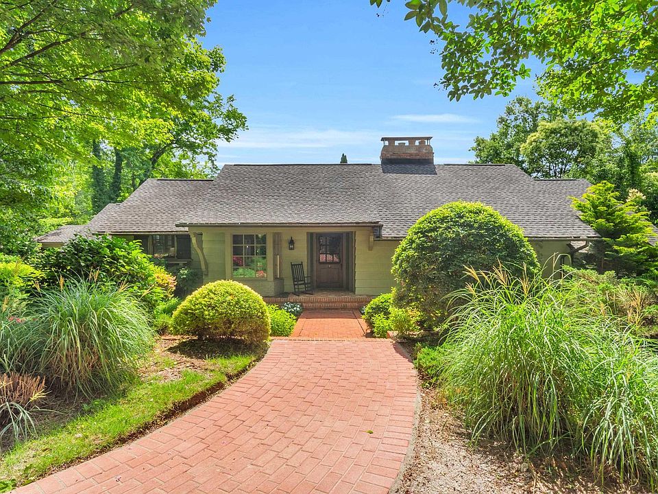 Tucked away on a quiet cul-de-sac just minutes from downtown, this one-of-a-kind home has been featured twice in Southern Living—and for good reason. Architecturally striking with natural wood siding, exposed beams and rafters, window boxes, and rare pecky cypress accents, this home blends timeless craftsmanship with warm character at every turn. Set back from the road and nearly hidden by mature landscaping, the home offers exceptional privacy and backs up to a protected conservation area for unmatched peace and natural beauty. Inside, you'll find soaring ceilings throughout, including a grand vaulted den and an impressive 11-foot ceiling in the kitchen, highlighted by reclaimed lumber and custom finishes. The floor plan lives primarily on one level, with minimal stairs, and features thoughtful details like arched doors, diamond-pane windows, and three stunning fireplaces. A central courtyard, complete with a tree growing in the middle, invites you to slow down and enjoy the serenity of the setting. Out back, a private pool is surrounded by lush landscaping, creating a true retreat on nearly 2/3 of an acre. The home also includes a 500-square-foot basement space with a half bath—ideal for storage, a workshop, or a future studio. Recent updates include a beautifully remodeled primary bathroom, updated hallway bath, a new HVAC unit, hot water heater, new pool pump, significant electrical updates, and more. This is a rare opportunity to own a home that combines design, privacy, and location in one unforgettable package.