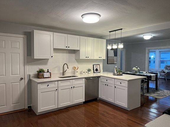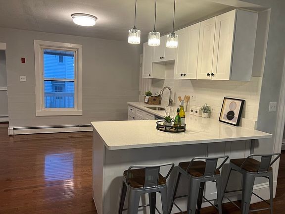 Nicely updated spacious 4-5 bedroom 2 bathroom Colonial home in a nice convenient and quiet neighborhood. Open concept first floor features a beautiful brand-new kitchen with stainless steel appliances, white shaker kitchen cabinets, quartz countertop, a huge living room with cathedral ceiling, eating area, a formal dining room, a family room and a fireplaced heated sun room, a full bathroom off the kitchen and a laundry room off the living room. On the second floor, there are three very spacious bedrooms, a spacious updated bathroom and a study room. Through the study room you can walk up to the huge third floor where you will find two huge bonus rooms which you can use as a home office and / or bedrooms. Lots of natural lights. All new hardwood floor throughout the whole house. Partially finished basement is a great space for kids to play as well. Paved Patio in the back of the house. Steps to downtown, restaurant and shopping, close to public transportation, easy access to Boston.