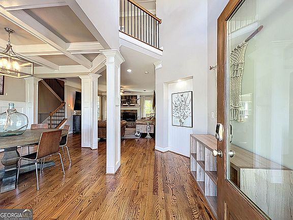 Welcome home! Flawlessly crafted and thoughtfully designed, this 4-bedroom 3 bath with office/flex space and unfinished basement home sits tucked at the end of a quiet cul de sac on nearly half an acre in the heart of Cartersville. Built in 2018, a grand two-story foyer layered in elegant details welcomes you into the home, leading effortlessly into expansive living spaces centered around the graceful living room fireplace. Gleaming hardwood floors and coffered ceilings add richness and character throughout the main level. The kitchen, both functional and stylish, features stainless steel appliances, high end granite counter tops, and a central island with a cozy breakfast nook, all flow into the open concept family room. Perfect for gathering or quiet moments, the screened in back patio overlooks a lush tree lined backyard, creating a peaceful backdrop for indoor outdoor living. A flexible and intuitive layout includes a main level guest bedroom with full bath, ideal for visitors, aging in place, or a private home office. Upstairs, the primary suite offers a quiet retreat with tray ceilings, spa inspired bath with double vanity and walk in shower, a sitting area, and a generous walk-in closet. Two additional upstairs bedrooms and a spacious media room or flex office adds extra versatility to the second floor. An unfinished daylight basement offers endless potential for customization whether for recreation, additional living space, or storage. Located within the Cartersville School district, this home combines elegant design, smart functionality, and room to grow all nestled in a peaceful, well-established neighborhood minutes from Cartersville Primary. Don't miss out on this home! Schedule a private showing today!