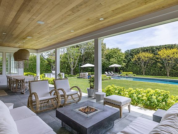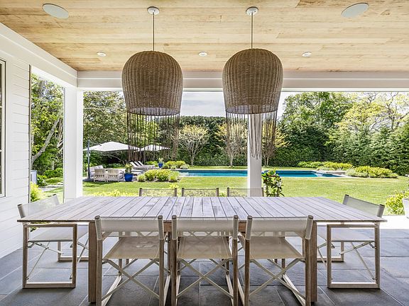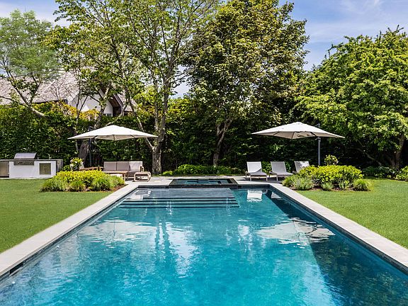 Rental Registration #: 23-411 RR#: 23-411. Located in the heart of the sought-after Amagansett lanes down a private road and less than half a mile to Ocean beaches, Amagansett village, and jitney stop. This brand-new transitional style home features 6 en-suite bedrooms, with 6.5 baths. The 6,850 SF home with open floorplan and walls of windows that bathe the home in natural light, is elegantly appointed throughout and offers every amenity one could desire. The gourmet kitchen is a dream for any chef with all high-end appliances and beautiful Calacatta gold marble counter tops. An elevator provides convenient access to all levels, including the fully finished lower level which features a recreation room with a pool table, gym, and wine cellar. The bedroom suites are all gracious in size and all the bathrooms are equipped with soothing radiant heat. Outside there is more space to relax, entertain and unwind with a dedicated built-in grilling station, a luxurious outdoor shower with rain head as well as a 50' x 18' heated Gunite pool, with tranquil waterfall feature, swimming platform, sundeck, and spa. The grounds are perfectly manicured and provide ample privacy and serenity to truly enjoy the summer. ALSO AVAIABLE: 5/23/25 - 5/31/25:; $45K