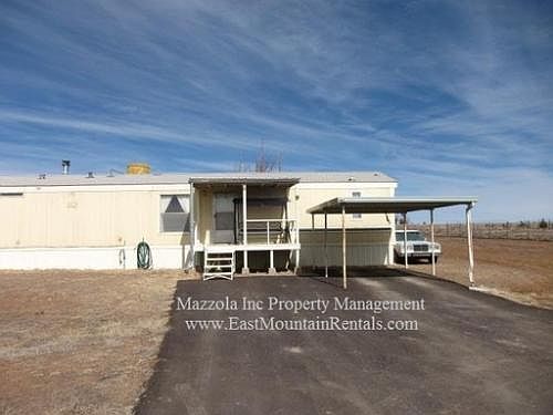 3 Bedroom, 2 Bathroom Manufactured Home in Edgewood, NM.Just over 1000 sq ft manufactured home with 3 bedrooms and 2 full bathrooms. Kitchen with bar, bright and open living area. Paved driveway with 1-car carport, shed, large workshop. Amazing views from the front and back deck, fully fenced 1.25 acre lot. Just minutes from the town of Edgewood's restaurants and shopping, close to I-40, schools and senior center. Call Lee for more information or a showing, (505) 730-5232.