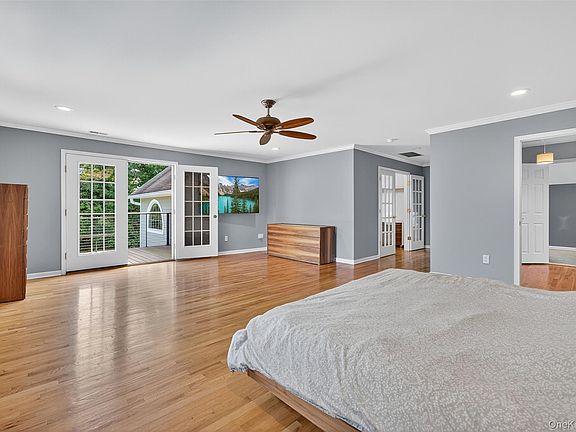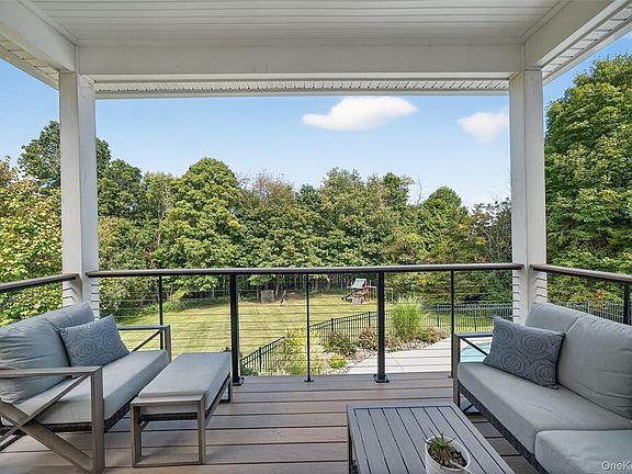 STUNNING custom build offering the ultimate in luxury living -- 4,120 square feet over three levels, built in 2003, and featuring 5 bedrooms (including the second floor dedicated to the primary en suite only), 3 full bathrooms, a gorgeous saltwater/gunite/heated in-ground pool, and sitting on 2.6 bucolic acres. This property has been meticulously cared for -- and updated even more -- by the current owners, and it shows from the moment you walk in the door. The photos really tell the story of this gorgeous property, but here are some key details . . . sits on a cul-de-sac with just 4 other properties on the road . . . enter home to dramatic living/great room with 18-foot ceilings, stone fireplace, and oversized sliders leading to rear covered balcony overlooking pool . . . open floor plan features chef's kitchen with all the bells and whistles, as well as a pantry . . . formal dining area just off the kitchen, which leads to an office/den with access to another rear balcony (also covered) . . . main floor includes two bedrooms, a full bath and a laundry room . . . upstairs (2nd floor) is the primary en suite, featuring a sitting room, oversized walk-in closet/dressig room, a luxury bathroom with dual vanity and whirpool tub, and a private deck overlooking the pool. . . . the lower level includes 2 more bedrooms, a full bath, family room, 2-car garage, and glass doors leading out to the pool area . . . property also includes a detached outbuilding, which is finished and heated -- great office/work space . . . . . . Private setting, yet just minutes from the Village of Warwick and all it has to offer, not to mention hiking, skiing, boating, entertainment, fantastic dining options, orchards, Farmers Markets, wineries, breweries, bike/walking trails, drive-in movie, bowling alley, schools, library, hospital, and so much more. Ideal commuter spot, too. This home and property has everything you need -- just move right in and unpack!