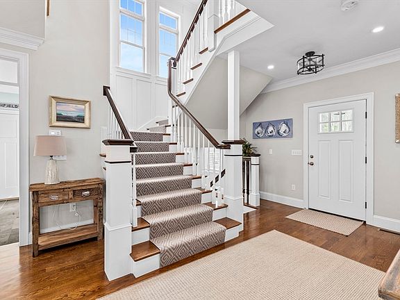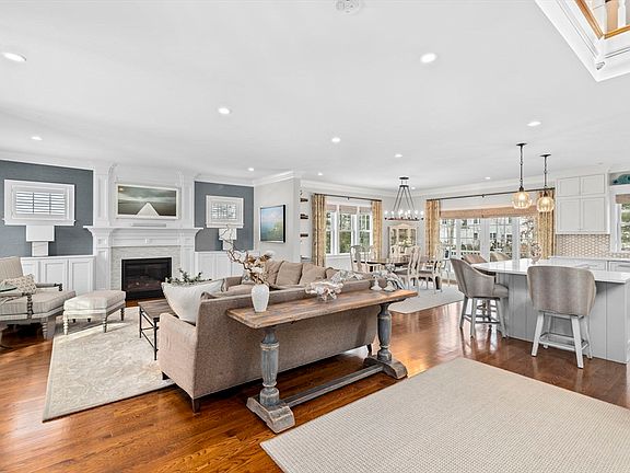 Custom built Nantucket Shingle style colonial situated in premier Marshfield Hills cul-de-sac neighborhood! A sunlit open floor plan captures the essence of casual coastal living, seamlessly blending style & comfort. Enter the heart of the home where a pristine white kitchen boasts quartz countertops, high end appliances & a spacious island. The culinary haven opens to both the dining area & roomy living room featuring a gas fireplace surrounded by beautiful millwork. Enjoy the convenience of a private home office adorned with sliding barn doors. A breathtaking 3-story staircase with oversized windows & wainscoating allows a seamless flow to the 2nd floor & lower level. Cathedral primary suite offers 2 large walk-in closets & spa-like bath with oversized double shower & soaking tub. Entertain in style in the walk-out lower level game room equipped with a dry bar, electric fireplace & full bath. Private backyard oasis complete with uplighting, stone fire-pit, deck & bluestone patio.
